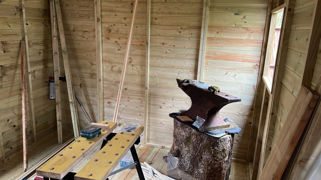 Here’s the shed finished … oops but it’s what we get up to in here will be the future oh yeh the anvil isn’t outside anymore